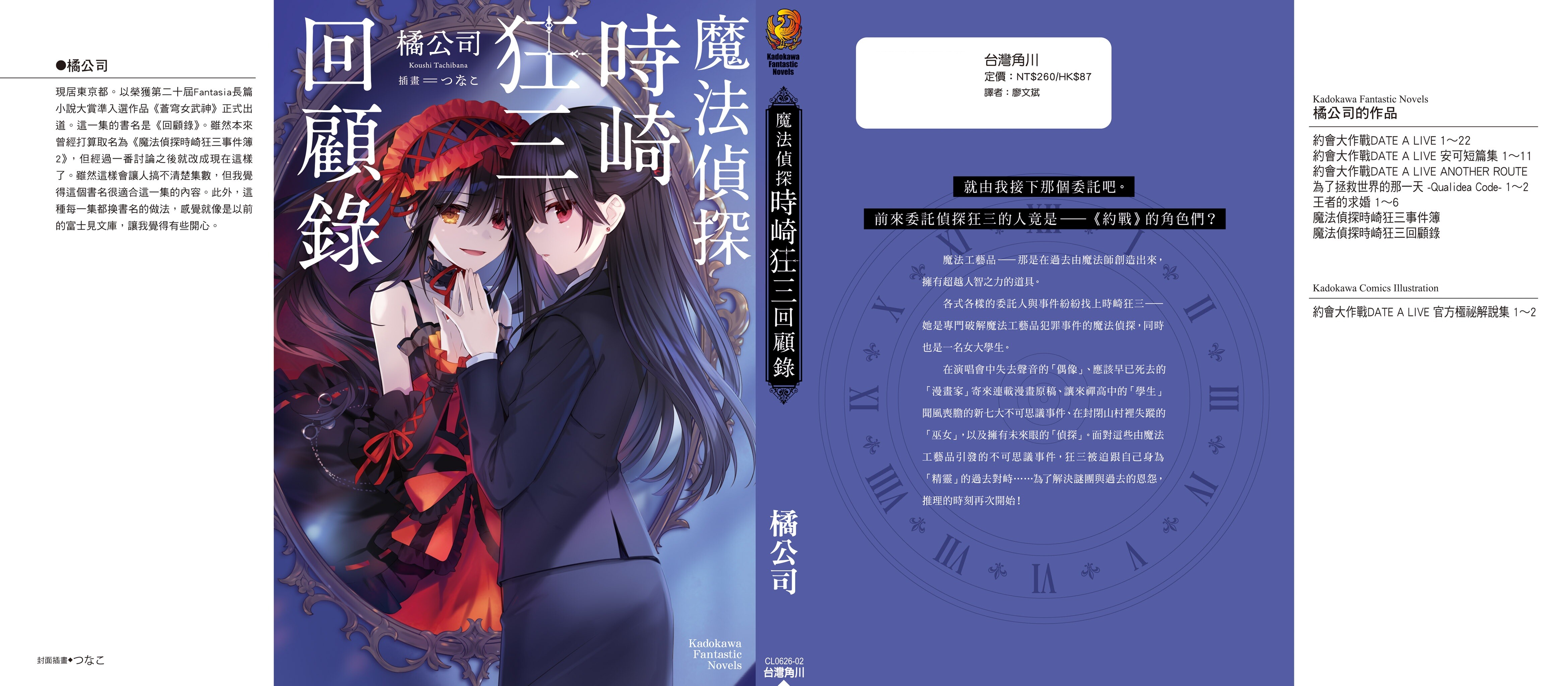 各式各樣的委託人與事件紛紛找上時崎狂三──她是專門破解魔法工藝品犯罪事件的魔法偵探,同時也是一名女大學生。