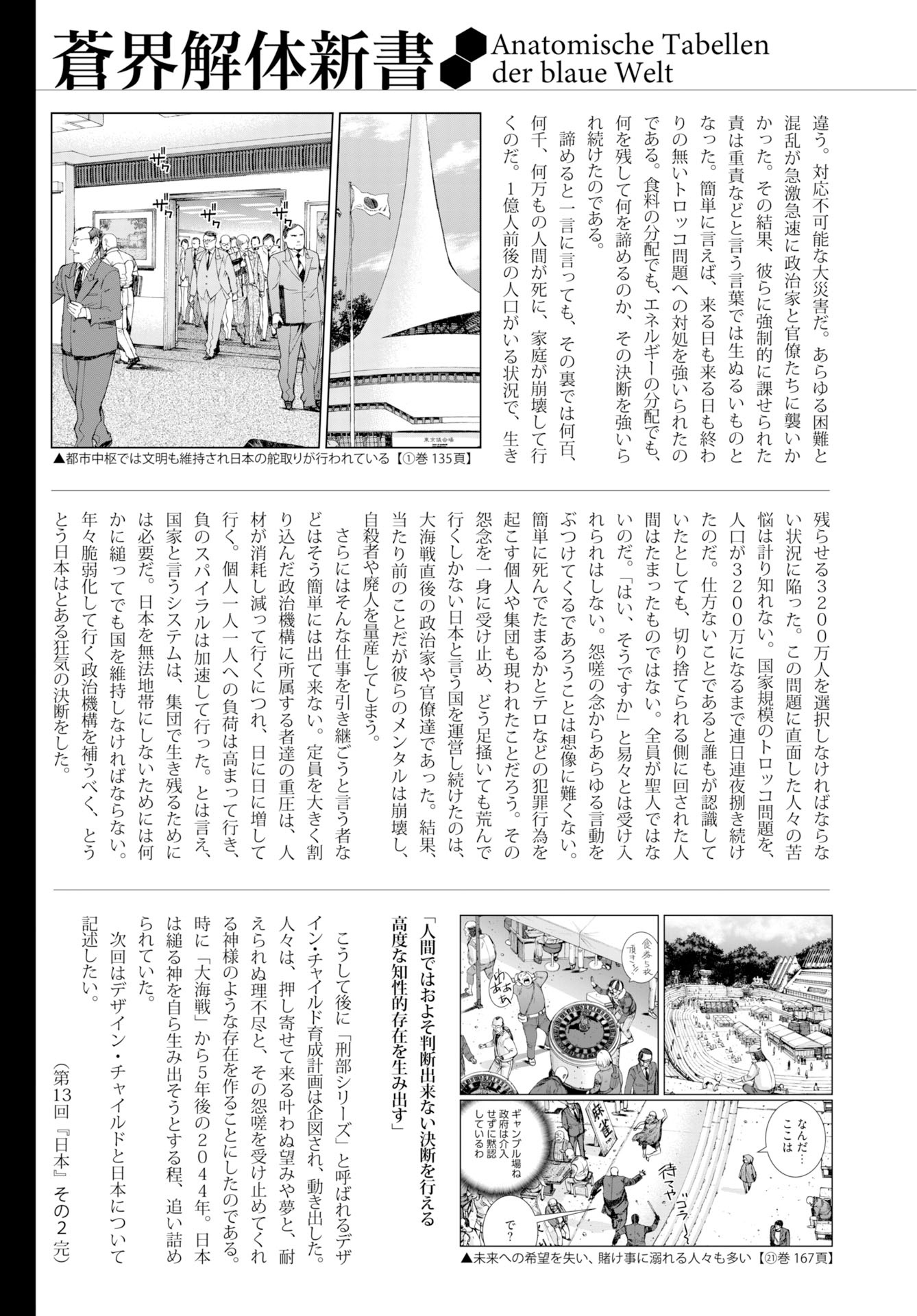 上一回的《日本 其一》中讲述了有关故事开始时间点的设定(译注:166话)。这一回中,我们则会详细讲述在此之前的日本的发展历程。这段故事最终会走向「天才儿童(Design Child)」的诞生;也就是说,这段文字最终会和「天才儿童」的故事连接在一起。