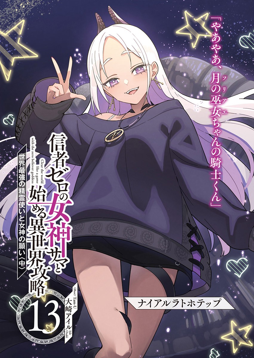 我是大崎アイル。感謝各位購買《和沒有信徒的女神大人一起攻略異世界》第十三集。然後,我想有些讀者已經知道了,沒有信徒決定要動畫化了!會說話的