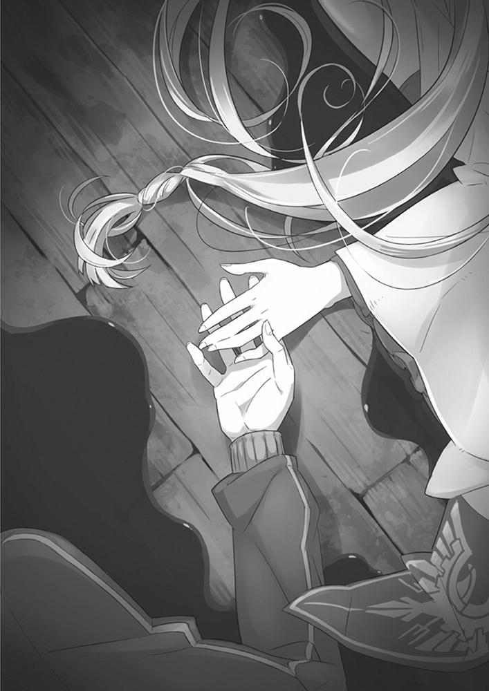 激动到甚至忘了自己的态度对爱蜜莉雅很失礼,莱因哈鲁特紧盯着手腕被抓的少女。红色双眸仰望发色跟自己瞳色相同的青年,菲鲁特的眼神充满不安。